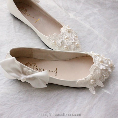 High Quality Pointed Toes Lace Pearls Women Wedding Shoes With Ribbons Lace up Ladies Party Dress Shoes Wedding Shoes