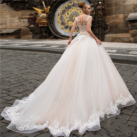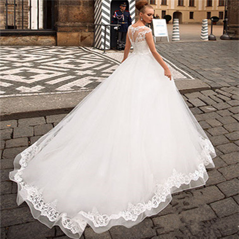 Ball Gown Wedding Dresses White Lace Bridal Gowns 2020 Bridal Wedding Dresses Dubai Luxury Wedding Gowns Stain Bridal Dresses