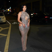 Novance Y4150 Elegant Women's Evening Dress Sexy Party Wear with Crystal Rhinestones for Birthday Night Club Made Mesh Fabric