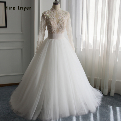 Custom Made Gorgeous Ball Gown Wedding Dresses Vestido De Noiva Princesa See Through Illusion Appliques Beading Princess Gowns