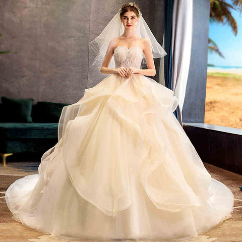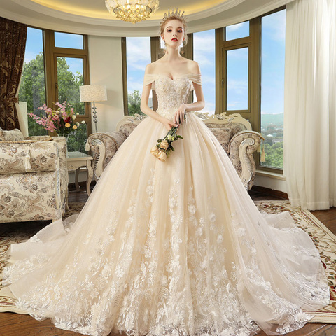 Gorgeous Ball Gown Wedding Dresses With Chapel Train Vestido De Noiva Princesa Pearls Appliques Flowers Bridal Gowns Alibaba