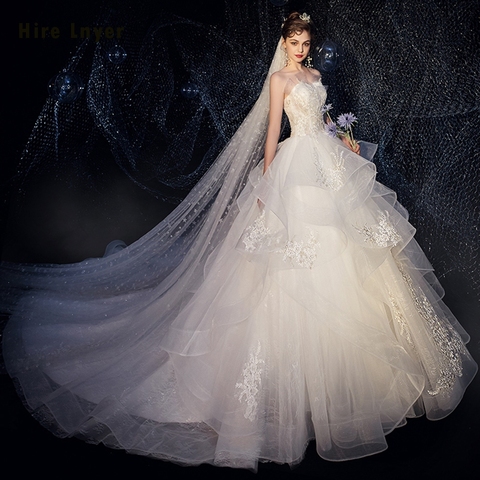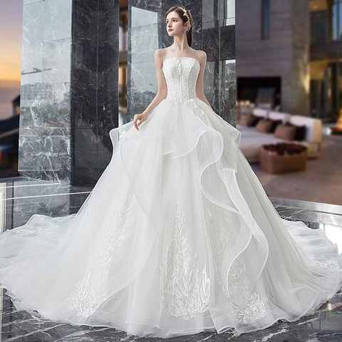 New Arrivals Strapless Lace up Back Lace Tulle White Princess Ball Gown Wedding Dress With Chapel Train Plus Size Alibaba