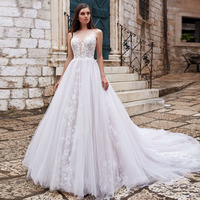 2021 New Floor-Length Wedding Dresses Sexy Illusion O-Neck Cap Shoulder Sparkly Tulle Backless Appliqued Plus Size Bridal Gowns